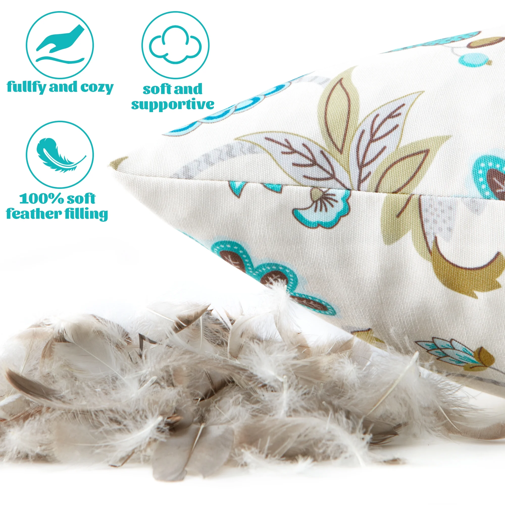 Blue Floral Embroidery Feather Throw Pillow